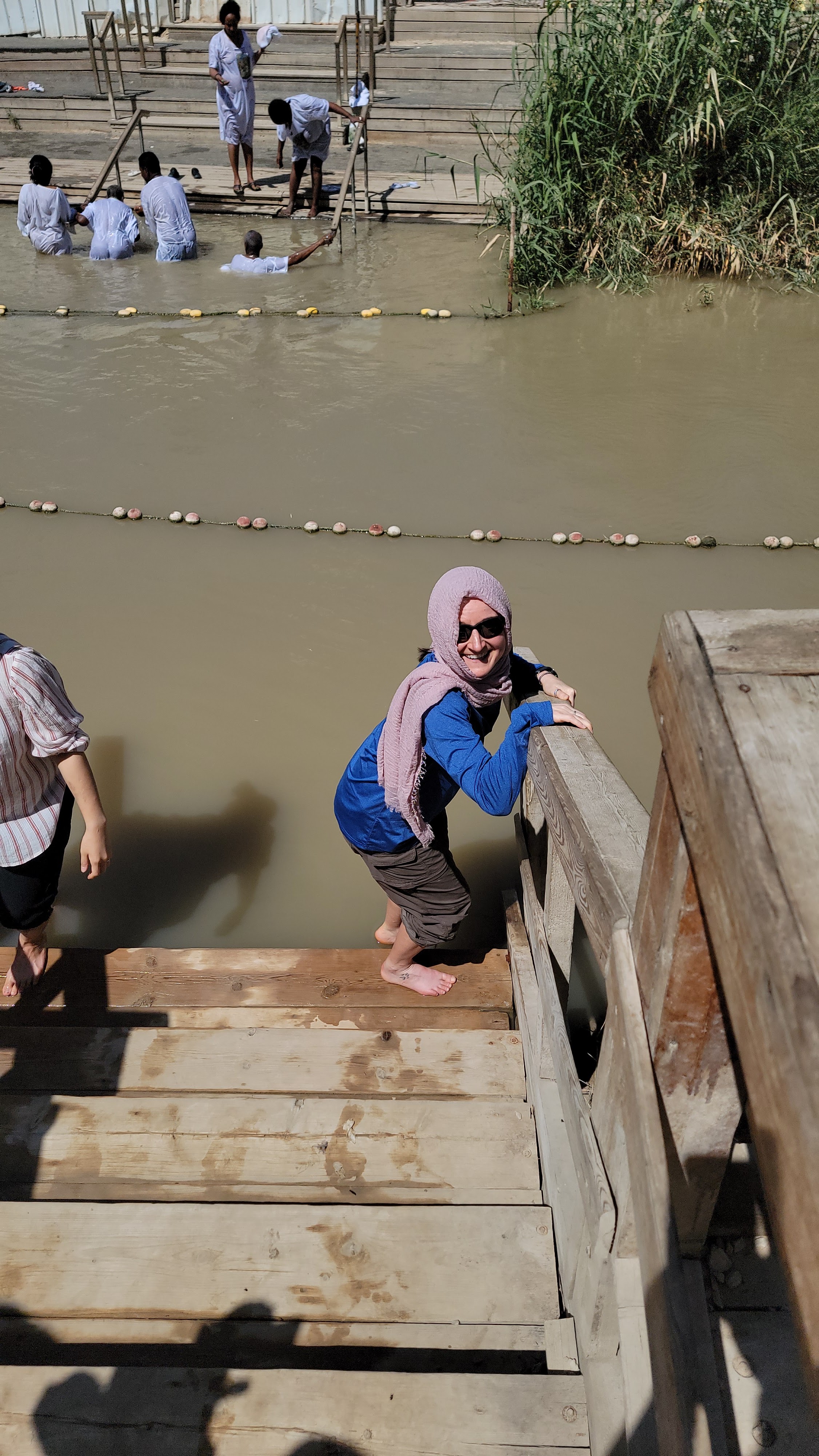 We made our way to the site where it has been proclaimed that John baptized Jesus. We continued our hike to the Jordan River. A few feet across the river in Israel, people were lining up to be baptized. On our side, people were dipping their feet in the “holy waters”. I couldn’t pass up the opportunity.