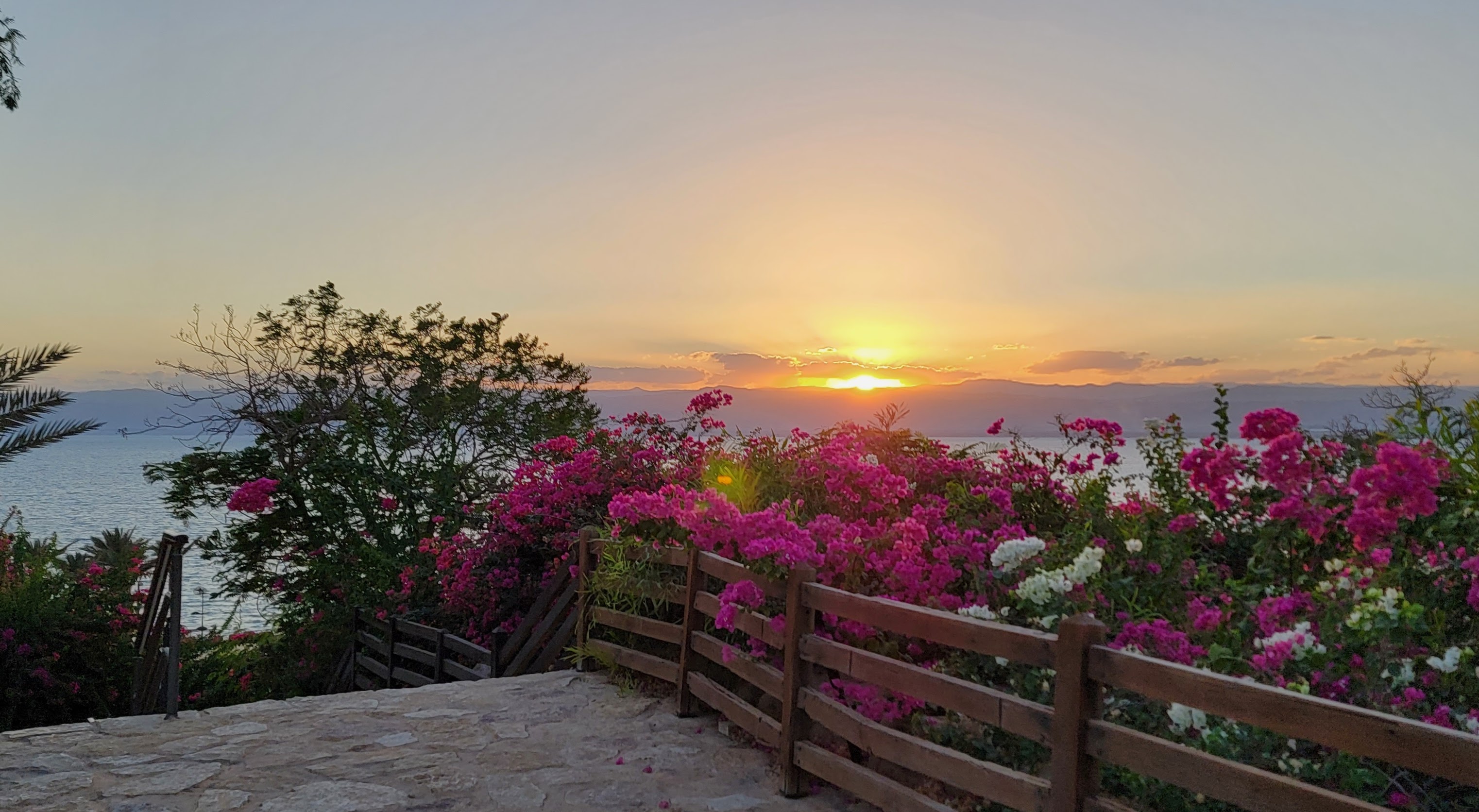 We are staying at a resort on the Dead Sea. We arrived early in the evening. We stowed our bags away in the room and went out to explore. We were told the best time to be at the beach was sunset. We had little time to spare. We set off for the beach which meant going down steps, a lot of them. We would go down one set of steps and then another and then another. For me, I have fewer issues climbing steps. Going down is difficult and treacherous. My balance is off and I am always swaying from side to side. I can manage the technicalities of going up better, but it tires me out so much more quickly.