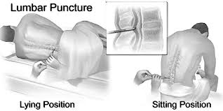 Lumbar Puncture (LP): A needle is inserted between two lumbar (lower back) vertebrae and used to withdraw spinal fluid. Analysis of the spinal fluid can determine a diagnosis of MS.
