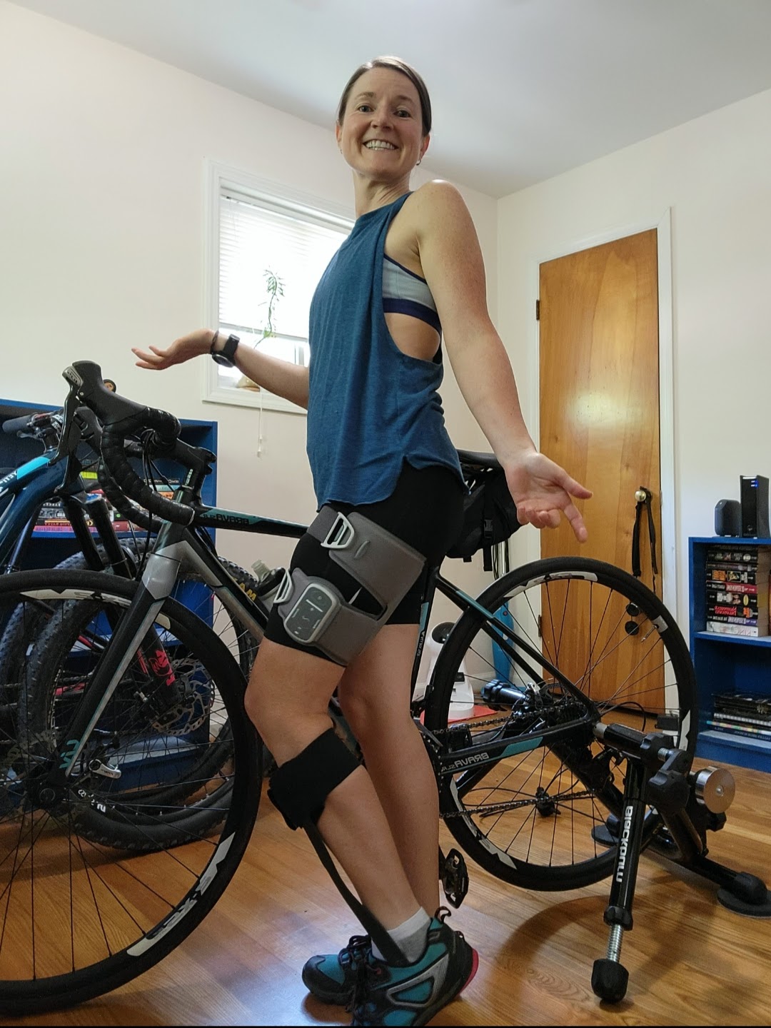 I took the Allard Ypsilon Flow home with me to trial for two weeks. It was the first AFO I was able to wear for longer than a short trip around the block walking. I was already impressed. I decided to try it out on my indoor cycling trainer. Again, I was impressed. My foot was properly supported through every pedal stroke. I did not have to concentrate on keeping my foot flexed, the AFO did it for me. As long as was wearing the Ypsilon Flow, I was not worried about hyperextending my ankle, as was becoming a frequent issue. My new AFO also had a bonus feature. It helped keep my leg better aligned through each pedal stroke. One of the things that abruptly ends my bike rides is my hip losing strength mid-ride due to multiple sclerosis. When this happens, my knee begins to drift inward as I pedal. This is an issue because improper pedaling form could lead to knee damage and pain. The other issue is banging the inside of my knee against the bike with every pedal stroke. The Ypsilon Flow did not completely prevent this problem, but it did prolong the time I was able to pedal before it became an issue. I was very happy for the extra time the AFO was allowing me to pedal.